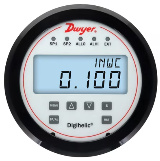 The Series DHC Digihelic®  is an innovative 3-in-1 instrument that functions as a high-precision digital pressure gage, a dual SPDT control relay, and a transmitter with current and voltage outputs.