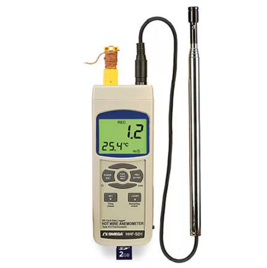 The Omega HHF-SD1 is a versatile environmental meter designed for high-accuracy air velocity and temperature readings. It features a slim telescoping probe (up to 37″) ideal for grilles and diffusers. What sets this unit apart is its ability to log data directly to a standard SD card in Excel-compatible formats, eliminating the need for specialized software. It also includes an input for Type J/K thermocouples, allowing it to function as a high-precision digital thermometer.