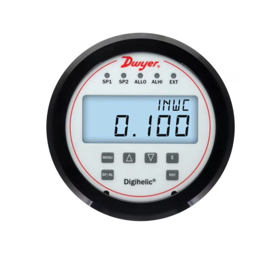 The Series DHC Digihelic® differential pressure controller is the ideal instrument for pressure, velocity, and volumetric flow applications reading in several commonly used engineering units with optional unidirectional or bidirectional ranges. These units achieve a 1.5% or better accuracy on extremely low ranges, and 0.5% accuracy for ranges at or above 1 in w.c. Calibration can be performed in the field, making maintaining its accuracy more manageable. Additionally, the Series DHC Digihelic® differential pressure controller includes 2 SPDT control relays with adjustable deadbands. Programming the unit is simple using the built-in menu. With scalable 4-20 mA, selectable voltage process outputs, and selectable Modbus® or BACnet communication, this controller can easily fit into your application. NIST CALIBRATION available in Product Configurator.