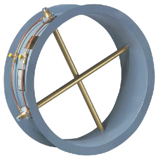 The Series FLST utilizes an advanced airflow averaging element within a head-type device that generates a differential pressure signal. It is constructed with strategically located sensing ports to sample total and static pressures across the duct. The upstream ports average total pressure in one isolated chamber, while static sensing ports average in a second chamber. This station is factory-mounted and pre-piped in a flanged duct casing for streamlined installation.