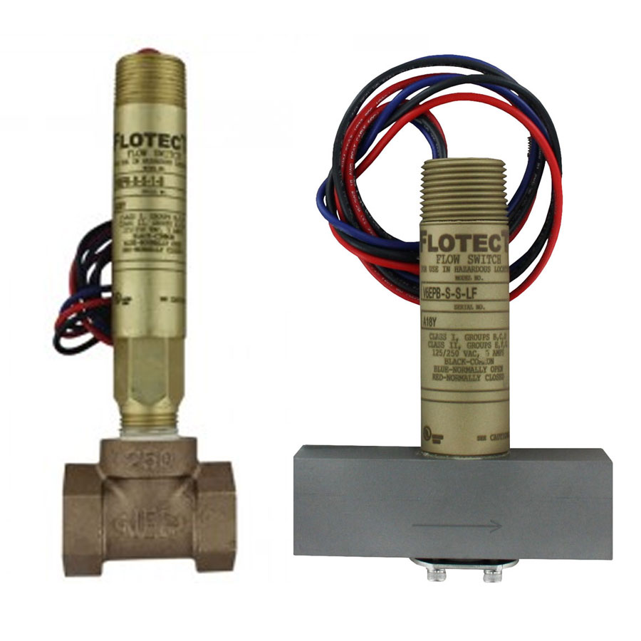 The Series V6 Flotect® Flow Switch is surprisingly compact, and specifically engineered to monitor liquid, gas, or air flows. Time tested in thousands of pipeline installations and processing plants around the world, this Series is Weatherproof, designed to meet NEMA 4 and Explosion-proof (listing included in the specs). Tees are available for installation in pipelines from 1/2″ to 2″ (12.70 to 50.80 mm). With bushings added the unit is easily adapted to 1/4″ and 3/8″ (6.35 and 9.53 mm) piping.