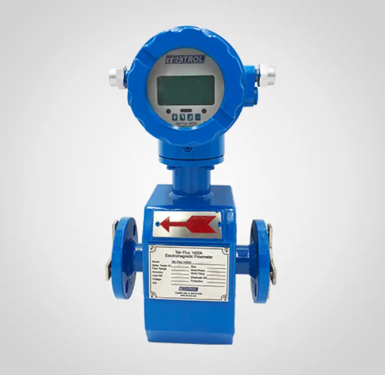 Tek-Flux 1400A Electromagnetic flow meter, also called Magmeters, it is a contact instrument used for measuring the volumetric flowrates of any fluid which can adequately conduct electricity in closed pipelines. These instruments are highly accurate, reliable, and stable devices that are used in various high-pressure industrial processes. Tek-Flux 1400A flow meter operates on the basis of Faraday’s Law of Induction. According to this principle, any change in the magnetic flux, linked to an electric circuit, causes an electromotive force (or voltage) to be induced in this circuit. The induced voltage is therefore directly proportional to the rate of change of magnetic flux with time. It can measure highly corrosive mediums such as concentrated acid and concentrated alkaline using PTFE lining material. By using Titanium electrodes, we can measure seawater, various chloride, and hypo-chloride fluids.